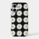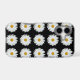 Protective phone case for the Apple iPhone and features the photo image of a pretty, white Daisy flower on a black background and printed in a repeating pattern. A fun, floral design! Select case for your iPhone model. NOTE: When changing case styles, you may need to adjust image pattern position on case.