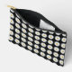 Small, zippered cosmetic bag that features the image of a pretty, white Daisy flower on a black background and printed in a repeating pattern. A fun, floral design! Perfect as a travel accessory pouch to hold makeup, perfume, and jewellery.