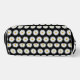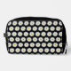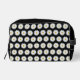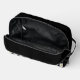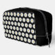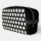 Zippered dopp kit toiletry bag that features the photo image of a pretty, white Daisy flower printed in a repeating pattern on a black background along with solid, black top and side panels. A fun, floral design! Perfect accessory bag for your toiletries for on-the-go travel!
