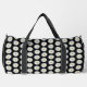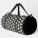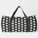 Travel or head on down to the gym in style with this large duffle bag that features an image of a white Daisy flower printed in a repeating pattern on a black background along with solid, black trim on side ends of bag. A fun, floral design!