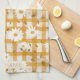 Bright and cheerful pattern kitchen towel featuring white, stylised daisy-like flowers with sunny yellow centres over a warm yellow and off-white gingham backdrop. Perfect for retro, cottagecore, and spring-inspired designs, this fresh and playful floral print brings a touch of sunny charm to any setting.