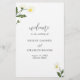 Elegant floral wedding program with a simple layout featuring watercolor painted white daisies in the upper left corner and lower right corner along with "welcome" in a lovely handwritten script. The back has your order of ceremony, wedding party and thank you message. This modern wedding program with daisy flowers is great for a spring or summer wedding.