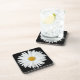 White Daisy Flower on Black Floral Coaster