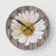 A close-up photo of a beautiful white daisy flower on grey wood background.