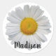 White Daisy Flower Personalised Name Sticker. Choose the shape of the sticker from the options menu.