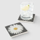 Protect your table top from water marks and stains with this decorative, stone beverage coaster with cork backing that features the photo image of a pretty, white Daisy flower on a black background. A lovely, floral design! Select your coaster stone style.
