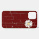 Single white daisy on dark red abstract brick pattern creating a distressed effect.