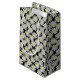 A gift bag with white daisies on a black background. You can choose the background colour of your preference.