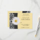 The text on this white daisy black and white damask shasta daisy and ribbon wedding reply or RSVP card is fully customisable. To change it use the personalise option. For more extensive text changes, such as changes to the font, font colour, or text layout, use the customise option. Although this card is currently customised as a wedding reply card, it could also be used be used as a general wedding insert card. Really it's up to you. All you need to do is change the text. The colours on this reply card are pale cream or yellow, black, and white. NOTE: This invitation is a flat printed design without any 3D or raised embellishments.
