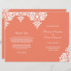 White Damask and Coral Wedding Programs are easy to customise and perfect for your wedding ceremony. The background colour on these wedding programs are currently a salmon/coral colour, but can be modified by customising the background colour. Fonts can also be altered to your choosing. Designed by Colourful Designs Inc. Copyright 2019