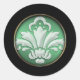 White Damask Green Shimmer Black Border Classic Round Sticker