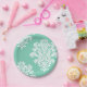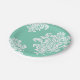 White Damask on Aqua Pattern Paper Plate