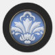 White Damask on Blue Shimmer Black Border Classic Round Sticker