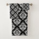White Damasks Pattern Custom Black Background Bath Towel Set
