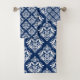 White Damasks Pattern Custom Navy-Blue Background Bath Towel Set