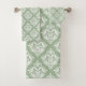 White Damasks Pattern Custom Sage Green Background Bath Towel Set