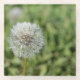 White dandelion flower on fresh dark green background. Close-up view of dandelion