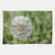 White dandelion flower on fresh dark green background. Close-up view of dandelion