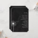 White dandelion with floating seedlings on black for contemporary wedding invitation.