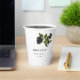 Rustic and gothic halloween theme bridal shower paper cup featuring illustration of black rose on a white background.