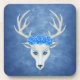 White Deer Head Blue Mysterious Eyes Antlers Roses Coaster