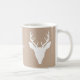 White Deer Head Silhouette On Beige & Custom Name Coffee Mug