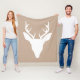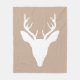Destei's original white silhouette design of a deer head with large antlers on a beige background colour.