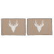 Destei's original white silhouette design of a deer head with large antlers on a beige background colour.