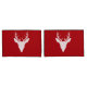 Destei's original white silhouette design of a deer head with large antlers on a red background colour.