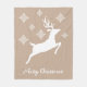 White Deer Shape On Beige With Snowflakes & Text Fleece Blanket