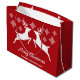 White Deer Shapes On Red With Snowflakes & Text Large Gift Bag
