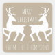 White Deers On Beige & Personalised Name Christmas Square Sticker
