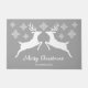 Destei's original silhouette design of two deer facing each other together with some decorative snowflakes. The background colour is grey. There is also a personalizable text area that now reads: "Merry Christmas".
