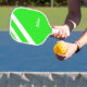 White diagonal stripes on green pickleball paddle