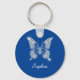 White Diamond Butterfly, DIY Name, Deep Blue Key Ring