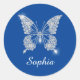 White Diamond Butterfly, Script Name, Deep Blue Classic Round Sticker