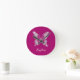 White Diamond Butterfly, Script Name, Deep Fuchsia Round Clock