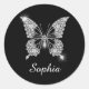 White Diamond Butterfly, White Script Name, Classic Round Sticker