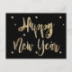 White Diamonds Gold Script Black Happy New Year Holiday Postcard