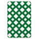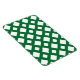 A bold, geometric pattern of large and small white diamonds on a green background. The green forms a lattice which separates the diamond shapes.