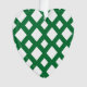 A bold, geometric pattern of large and small white diamonds on a green background. The green forms a lattice which separates the diamond shapes.