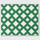A bold, geometric pattern of large and small white diamonds on a green background. The green forms a lattice which separates the diamond shapes.