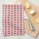 White Dog Bone Herringbone Pattern Brick Red Tea Towel