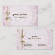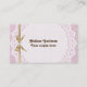 White doily with lace and pink coloured burlap business card template design that features a white round doily with lace on light pink burlap with ribbon and bow in beige with metallic effect and a white jewel. Text in brown. Note that lace, burlap, flower and jewel are all “printed on” and not real fabric, metal, gem or crystal. This elegant, sophisticated and romantic design with a rustic essence is fully customisable and is perfect for personal or professional use.