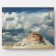 A photograph of White Dome Geyser in Yellowstone National Park, with clouds full of rain in the background.