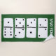 Add a name or a custom message to create the perfect personalised beach towel. This towel features simple, hand-drawn style illustrations of white dominoes with black dots and printing against a green background.