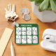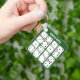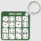 Add a name or a custom message to create the perfect personalised keychain for fans of playing dominoes and other games. This key chain features simple, hand-drawn style illustrations of white dominoes with black dots and printing against a green background.