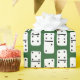 Simple hand-drawn style illustrations of dominoes in white with black printing or dots on them are arranged in a pattern against a green background on this wrapping paper. It's perfect for anyone who loves playing dominoes and other games.
