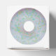 A mouth-watering donut, full of delicious sweetness, covered in white icing (frosting) and lots of colourful sprinkles