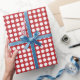 A wrapping paper designed with a white dot pattern on a dark red background. Customize the dark red background among other options.